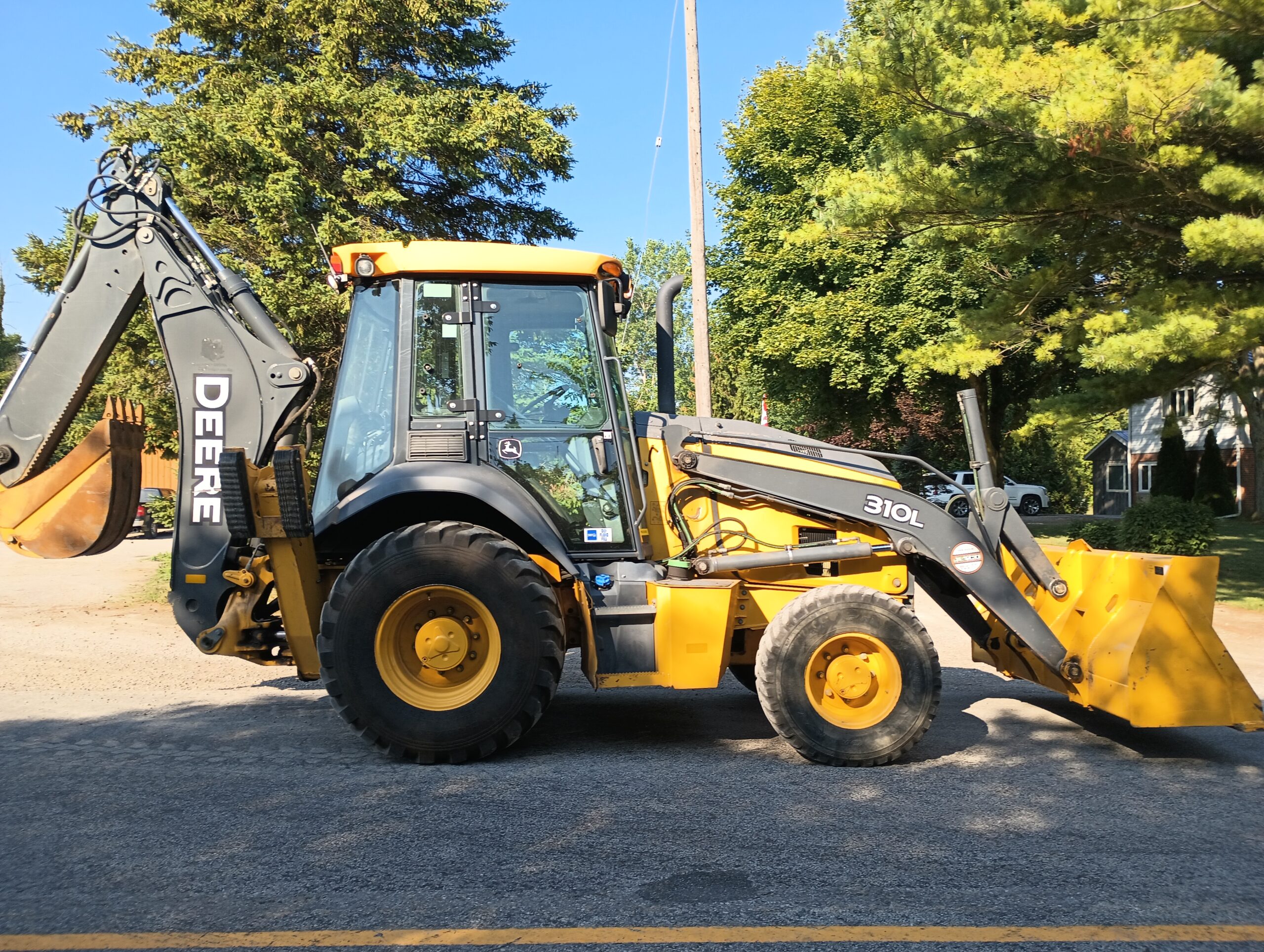 2013 John Deere 410K Loader Backhoe, 4×4, 4 Speed Powershift, Extendahoe, 2 Stick Control, Ride Control, Cab and A/C, Front and Rear Auxillry Hydraulics, Pattern Changer, Air Seat, Side Dump, 12″ Bucket, 1,196 hrs. $79,500.